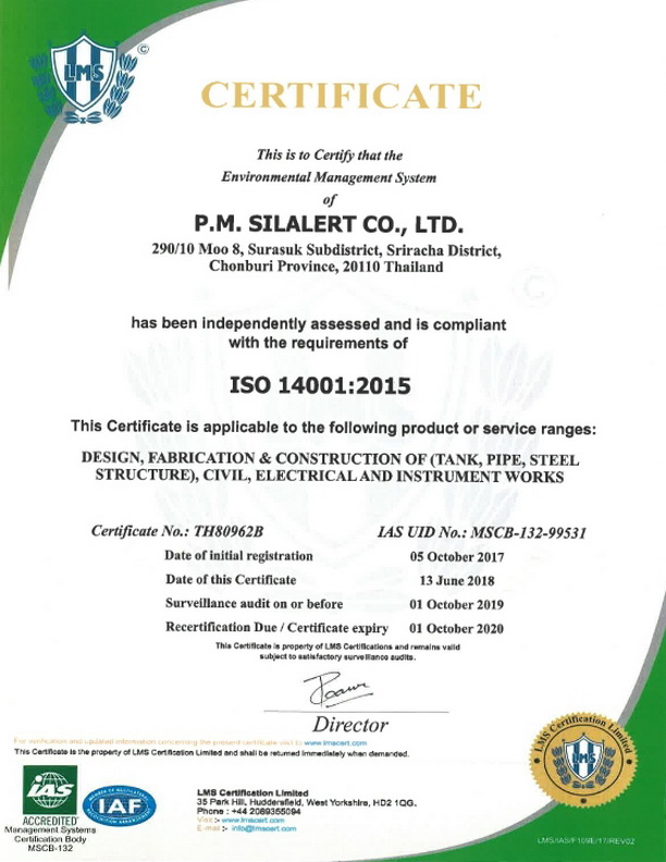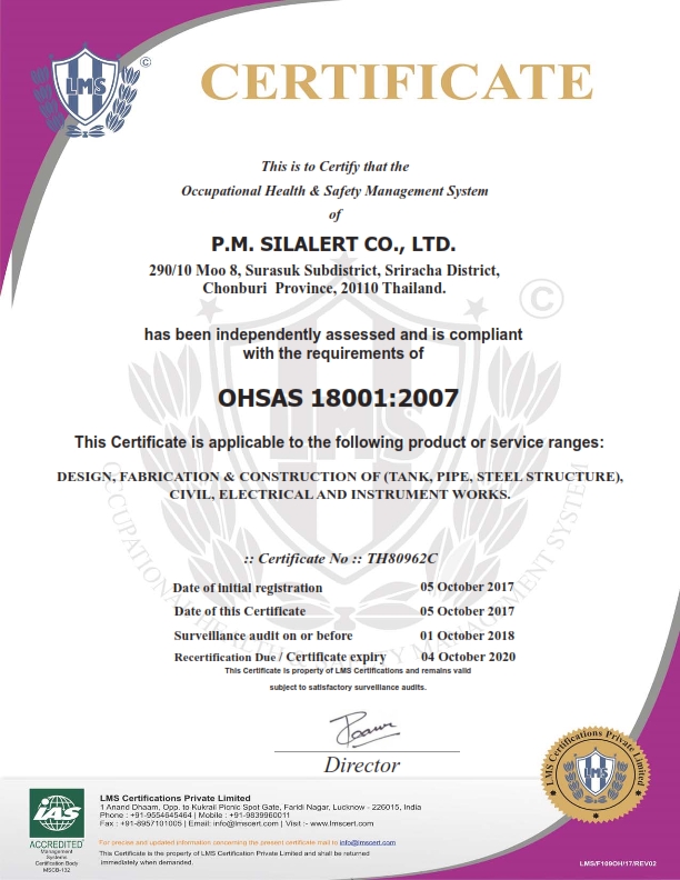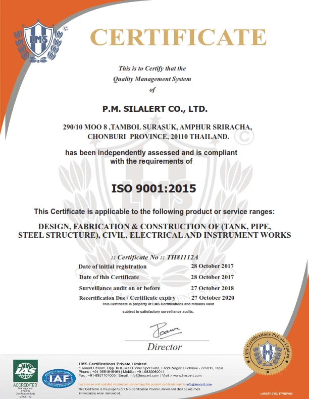 P.M.Silalert Co.,Ltd is an expert in design, fabricated, installation of work such as Pressure tanks, Oil storage tanks, Water storage tanks, Chemicals plants, Piping system work both upper-ground and underground, steel structure work by various activities of the company of the company has operated in accordance with customer and internationals standards accepted worldwide